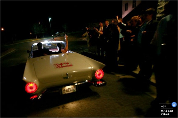 - Nice way to photograph the couple's sendoff. Created a whimsical scene. Might try a rim light on well-wishers (just a thought, but sometimes a guest is willing to hold a sidelight on a moment's notice. However I realize how difficult these scenes are to capture to begin with).